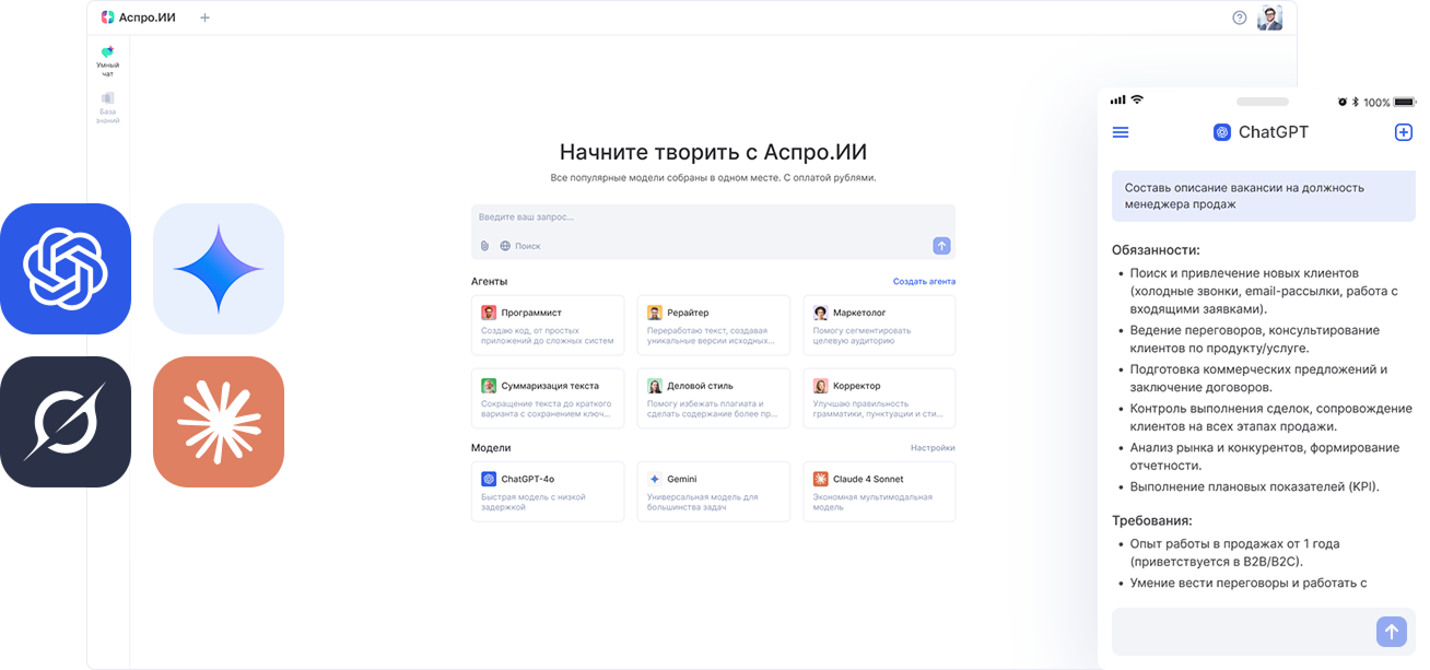 Безусловно. Рынок генеративных моделей развивается стремительно, и мы будем добавлять новые перспективные нейросети. Наша цель — предоставить вам выбор из лучших LLM (Large Language Models), чтобы вы могли подбирать оптимальный инструмент под конкретную задачу для максимальной оптимизации вашей работы.